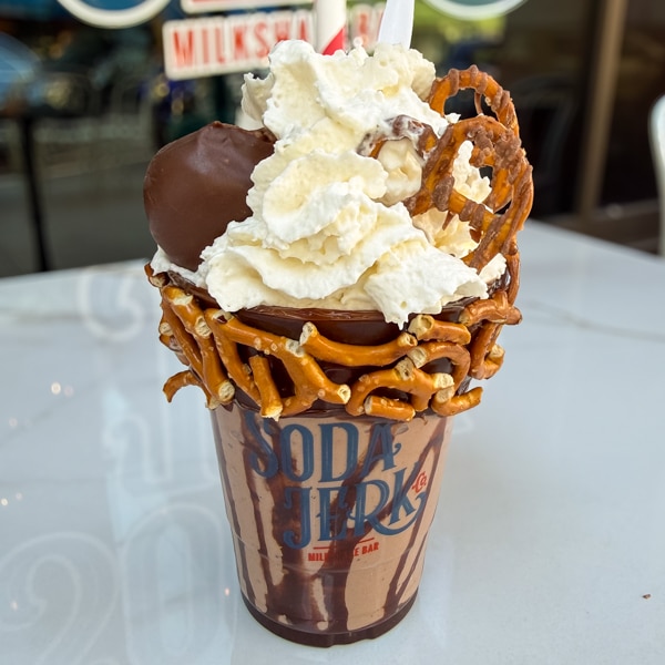 buckeye chocolate + chocolate-covered pretzels + vanilla whipped cream + chocolate sauce + fudge & crushed pretzels rim
